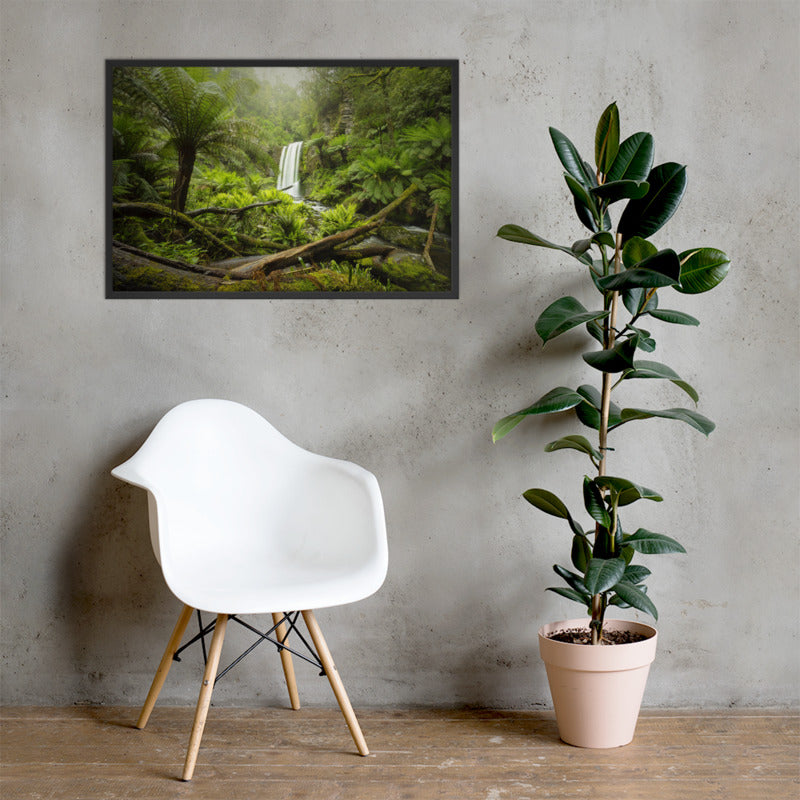 This photograph is printed on a Luster paper that allows you to get very vivid colors and a glossy effect, so as to highlight the intense greens of the marshy landscape. Everything is framed in a wooden frame that recalls the trunks placed at the bottom in the picture.